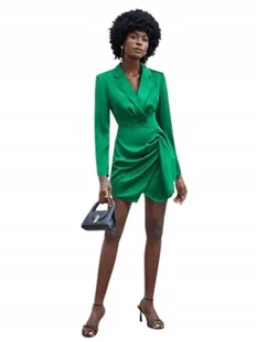 Shein Sukienka Marynarkowa Zielona Satyna 38 Łwn