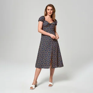 Sinsay - Sukienka midi z wiązaniem - Czarny
