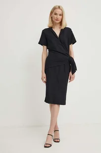 Sisley sukienka lniana kolor czarny midi prosta