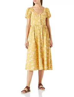 Springfield Damska sukienka midi z odkrytymi plecami, fantazyjna, lniana sukienka, żółta/pistacja, 36, Żółty/pistacja, 38