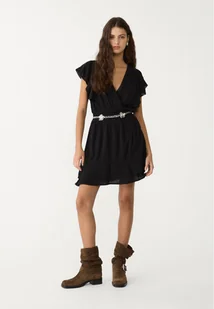 Stradivarius Krótka zwiewna sukienka z falbanami Czarny XS