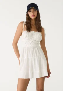 Stradivarius Krótka sukienka bombka z gumką na koszulce Ecru XL