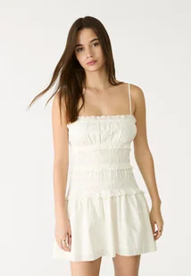 Stradivarius Krótka sukienka na ramiączkach z marszczeniami Biały XL