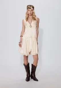 Stradivarius Krótka sukienka typu halka z koronką Ecru M