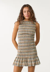 Stradivarius Krótka sukienka w kratkę Beżowy XL