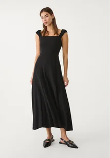 Luźna sukienka średniej długości z mieszanki wiskozy i lnu. Prosty dekolt i elastyczne ramiączka z marszczeniem. Odkryte plecy ze skrzyżowanymi paskami i wiązaniem. Niewidoczne zapięcie na suwak z tyłu. Dostępna w różnych kolorach.