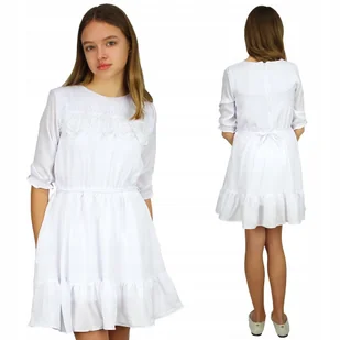 Elegancka zwiewna Sukienka z Falbaną w białym kolorze na bawełnianej podszewce w pasie gumka, dodatkowo sznureczek do przewiązania dół rozkloszowany, dwuwars...