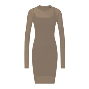 Właściwości: Sukienka marki Calvin Klein Jeans. Model: Sheer Yarn Roll Ne. Fason: Slim Fit. Skład: 65% Akryl ,35% Poliamid . Kolor: beżowy.