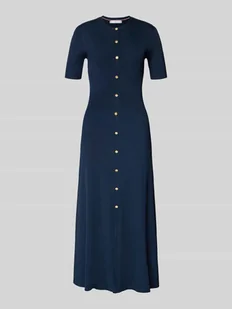 Sukienka casualowa damska Tommy Hilfiger;Efekt: jednolity kolor;Krój: dopasowany;Długość: Midi;Dekolt: Okrągły dekolt;Aplikacja: Detal z logo;Detale: Ozdobne guziki;Zapięcie: Listwa guzikowa;Rękaw: krótki