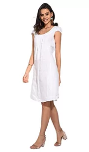 Sukienka damska 100% lniana Made in Italy, długa sukienka z okrągłym dekoltem, z przodu z krótkim rękawem, biała, rozmiar: S, biały, S