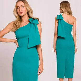 Moe sukienka na jedno ramię z ozdobną kokardą turkusowa M847 to propozycja dla kobiet ceniących elegancję z nutą oryginalności. Asymetryczny fason nadaje stylizacji nowoczesnego charakteru, a ozdobna kokarda na ramieniu dodaje jej wyjątkowego uroku. Dopasowany krój pięknie podkreśla sylwetkę, a wysokiej jakości materiał zapewnia komfort noszenia przez cały dzień.