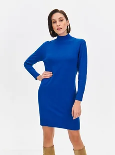 Sukienka damska Top Secret efektowna dzianinowa. Dzianinowa sukienka damska o kształcie dopasowanym do kobiecej sylwetki i podkreślającym jej smukłość. Posiada ona długość do połowy uda oraz proste długie rękawy zakończone praktycznym ściągaczem, a u góry ma kołnierz golfowy i wykonana została z delikatnej oraz przyjemnej w dotyku dzianiny. Doskonale sprawdzi się ona w przeróżnych kobiecych stylizacjach wiosennych czy też letnich, będąc odpowiednim wyborem zarówno do pracy, jak i również podczas weekendu. Sukienka dostępna w kolorze niebieskim SSU4578NI. Modelka ma 178 cm wzrostu i prezentuje rozmiar 34.