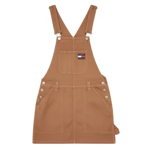Sukienka damska Tommy Jeans Dungaree mini ogrodniczka brązowa Fason: Sukienka ogrodniczka o kroju mini Kolor: Ciepły, brązowy Materiał: Wysokiej jakości, gładka tkanina bawełniana Branding: Dyskretne, haftowane logo flagi Tommy Jeans Styl: