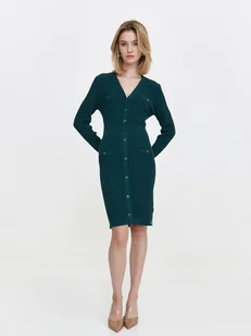 Sukienka damska dostępna w kolorze ciemnej zieleni TSKW24SUK480979X00. Modelka ma 177 cm wzrostu i prezentuje rozmiar 34.