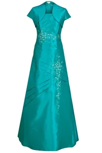 Szukasz wyjątkowej suknina karnawał, sylwestra, wesele lubszalone stylowe panieńskie? Wyjątkowa i nietuzinkowa długa suknia. Gorsetem podkreślisz piękne ramiona i uwydatnisz biust, wiązaniem z tyłu dobrze go dopasujesz. Materiał- połyskująca tafta, zdobiona zakładkami iwyszytym kwiatowym haftem. Sukienka posiada koło na halce dzięki czemu ładnie się układa. Dopasowana góra, podkreślona talia, dół rozkloszowany - klasa i styl.