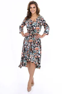Zwiewna sukienka, która sprawdzi się idealnie podczas letnich upałów. Sukienka jest uszyta z delikatnej tkaniny przez co ładnie układa się na figurze i nie krępuje ruchów. Dekolt V pięknie podkreśla i eksponuje biust. Gumka w pasie ładnie odcina talie, dodatkowo pasek z tej samej tkaniny. Sukienka została uszyta na podszewce, dzięki czemu nie prześwituje.