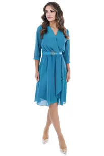 Zwiewna sukienka na każdą okazję w zależności od printu na tkaninie. Dekolt V zakładany którypięknie podkreśla i eksponuje biust. Rękaw 7/8 lekko umarszczony wykończony zapinanym mankietem na złoty guzik. Dół sukienkiz efektownym rozcięciem. Cała sukienka na podszewce.