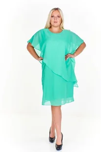Asymetryczna, luźna sukienka. Dół delikatnie poszerzany. Dekolt okrągły. Rękaw krótki. Wierzchnia warstwa szyfonu, zarówno z przodu jak i z tyłu przebiega po skosie.