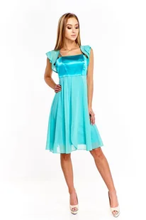 Szykuje się specjalna okazja, spotkanie rodzinne, uroczystość weselna a może impreza w plenerze? W tej sukience z pewnością będziesz wyglądała kobieco i szykownie. Podkreślisz piękno biustu i ramion. Sukienka uszyta z połączenia dwóch materiałów. Satyna w jednolitym kolorze, dopasowana w biuście, dół rozkloszowany. Drugi materiał to szyfon naszyty w dolnej partii sukienki, dodaje lekkości i subtelności całej kreacji.