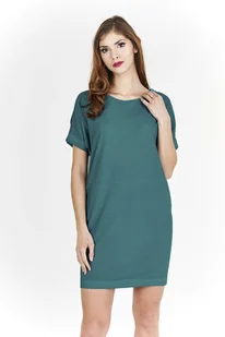 Kimono, luźna sukienka. Uszyta została z miłej w dotyku dzianiny. Dekolt okrągły. Rękaw kimono rozcięty od góry długość rozcięcia około 12 cm. Tył prosty.