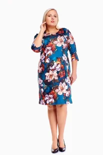 Sukienka o prostym kroju, taliowana. Idealna dla kobiet dojrzałych, świetnie sprawdza się w codziennej stylizacji podkreślając nasz styl każdego dnia. Bardzo ładnie leży na paniach w większych rozmiarach uwydatniając ich okrągłe atuty. Dekolt w lekki szpic ładnie wysmukla szyje. Sukienka bardzo kobieca, wzorzysta w stonowanych barwach.