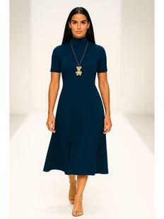 sukienka dzianinowa dopasowana dzianina średniej grubości, kryjąca sukienka idealna na wieczór eksponuje figurę dół w kształcie litery A dekolt golf poszerzana na biodrach długość rękawów 20 cm wykonana z n ...