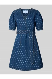 Sukienka jeansowa damska YAS;Mieszanka bawełny;Taliowany krój;Długość mini;Model PRIKKA;Dekolt w serek;Kopertowy styl;Wiązany pasek;Długość tyłu w rozmiarze 36: 90 cm;Szerokość klatki piersiowej w rozmiarze 36: 45 cm;Długość rękawa w rozmiarze 36: 32 cm