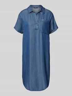 Sukienka jeansowa damska OPUS;Czysty lyocell;Prosty krój;Długość do kolan;Model ‘Wasya’;Wykładany kołnierz;Dekolt w serek;Kieszeń na piersi;Krótkie rękawy;Długość tyłu w rozmiarze 36: 104 cm;Szerokość klatki piersiowej w rozmiarze 36: 42 cm