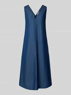 Sukienka jeansowa damska Marc O'Polo;Efekt: Melanż;Krój: rozkloszowany;Długość: Midi;Dekolt: Dekolt w serek;Detale: