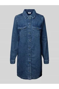 Sukienka jeansowa damska Noisy May;Prosty krój;Długość mini;Model NEW;Wykładany kołnierz;Kieszenie na piersi zapinane na guziki;Ozdobne szwy;Listwa guzikowa na całej długości ;Długość tyłu w rozmiarze S: 87 cm;Szerokość klatki piersiowej w rozmiarze S: 39 cm;Długość rękawa w rozmiarze S: 63 cm