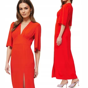 Sukienka Kobieca Wieczorowa Na Lato Maxi Z Rozcięciem Czerwona 40 L
