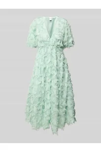 Sukienka koktajlowa damska Y.A.S.;Taliowany krój;Sukienka midi;Model PAZYLLA;Dekolt w serek;Fakturowany wzór;Długość tyłu w rozmiarze S: 118 cm;Szerokość klatki piersiowej w rozmiarze S: 43 cm;Długość rękawa w rozmiarze S: 31 cm