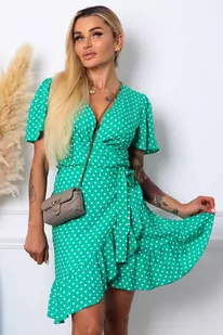 SUKIENKA KOPERTOWA W KROPKI Z PASKIEM-CIEMNO ZIELONA
