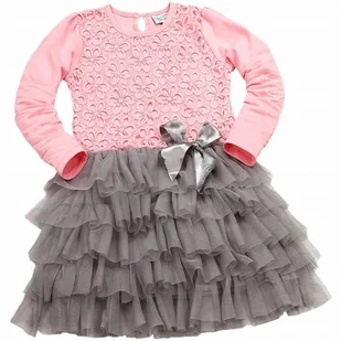Piękna sukienka z koronką i tiulem w różowo-szarym kolorze z długim rękawkiem odcięta w pasie góra dwuwarstwowa wierzchnia warstwa ozdobna, z pięknej koronki...
