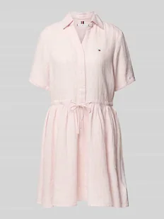 Sukienka koszulowa damska Tommy Hilfiger Sportswear;Krój: rozkloszowany;Długość: do kolan;Dekolt: Dekolt w serek;Detale: Marszczenie w talii, tasiemka wiązana;Rękaw: