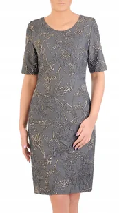 Elegancka wizytowa sukienka na wyjątkowe okazje z tłoczonej tkaniny w modnym grafitowym kolorze, wzór na sukience z dodatkiem złotej nitki czyni z niej ideal...