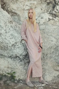 Sukienka długa, uszyta jest z przyjemnej w dotyku, zmiękczanej, lekko gniecionej tkaniny lnianej w kolorze brudnego różu. Po bokach znajdują się kieszenie. Zarówno w upalne letnie dni jak również chłodnie ...
