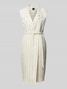 Sukienka lniana damska BOSS;Elastyczna mieszanka lnu z dodatkiem wiskozy;Lekko taliowany krój;Długość do kolan;Model ‘Drupe’;Kopertowy styl;Pasek w talii;Kołnierz z połami;Długość tyłu w rozmiarze 36: 105 cm;Szerokość klatki piersiowej w rozmiarze 36: 48 cm
