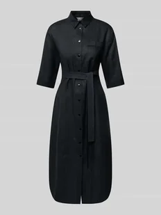 Sukienka lniana damska MM;Czysty len;Prosty krój;Sukienka midi;Model ‘SALUTE’;Kołnierzyk koszulowy;Listwa guzikowa na całej długości;Kieszeń na piersi;Wyhaftowane logo;Wiązany pasek;Długość tyłu w rozmiarze 36: 120 cm;Szerokość klatki piersiowej w rozmiarze 36: 49 cm;Długość rękawa w rozmiarze 36: 35 cm