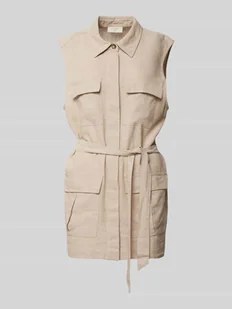 Sukienka lniana damska FREE/QUENT;Mieszanka lnu i wiskozy;Prosty krój;Sukienka mini;Model ‘Lava’;Krój bez rękawów;Wykładany kołnierz;Listwa guzikowa na całej długości;Nakładane kieszenie z patką;Wiązany pasek;Długość tyłu w rozmiarze S: 75 cm;Szerokość ramion w rozmiarze S: 42 cm;Szerokość klatki piersiowej w rozmiarze S: 54 cm
