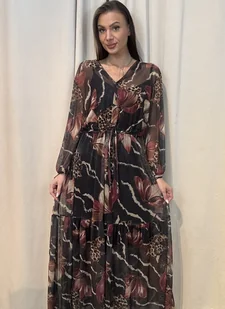 Sukienka maxi z halka i troczkiem w pasie. Występuje w innych kolorach. Rozmiar uniwersalny. Włoska produkcja. Wymiary: Biust 140cm Długość 132cm Skład: 100% wiskoza 100% polie ...
