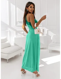 To wyjątkowa okazja, która wymaga wyjątkowej oprawy. Atutem tej sukienki jest niezwykła uniwersalność i rozciągliwość materiału. Prezentuje się dobrze zarówno na rozmiarze XS jak i na rozmiarze XL Sukienka maxi na jedno ramię w kolorze miętowym prezentuje się zjawiskowo.