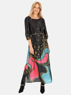 Niezwykły akcent - czarna długa sukienka w kolorowe wzory