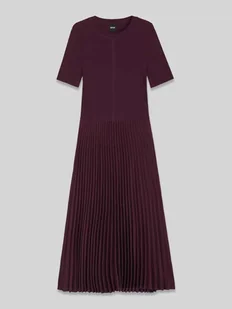 Sukienka midi damska BOSS;Model ‘Fadridi’;Efekt: jednolity kolor;Krój: dopasowany;Długość: Midi;Dekolt: Okrągły dekolt;Rękaw: krótki;Brzeg: prosty;Wykończenie materiału: Plisy, prążkowanie;Materiał: Mieszanka wiskozy