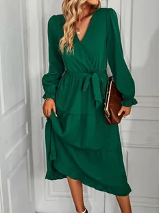 Sukienka midi wiązana w pasie - Ciemnozielony XXL