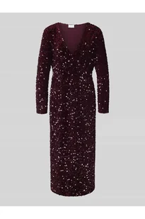 Sukienka midi damska Vila;Taliowany krój;Kopertowy styl;Model FAITH;Dekolt w serek;Design z długim rękawem;Cekinowe obszycie;Nieprzejrzysta halka;Szerokość w pasie w rozmiarze S: 38 cm;Długość całkowita w rozmiarze S: 124 cm