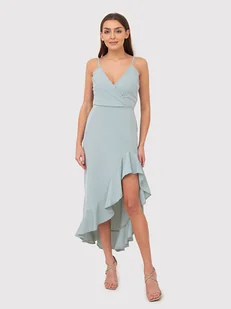 Sukienka midi z falbanką na ramiączkach w kolorze miętowym DA1503 DUCKEGG Letnia sukienka midi w kolorze miętowym. Model z kopertową górą, regulowanymi ramiączkami i elastyczną talią. Sukienka posiada z ...