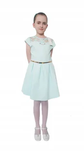 Sukienka MIĘTOWA koronka wizytowa KOMUNIA ŚLUB Śliczna elegancka sukienka ze złotą przywieszką oraz złotym paskiem. Idealna na każdą imprezę czy niedzielny s...