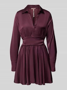 Sukienka mini damska Guess;Mieszanka materiałów z dodatkiem streczu;Taliowany krój;Model ‘CONCETTA FLARE DRESS’;Wykładany kołnierz;Dekolt w serek;Tasiemka w talii;Długość tyłu w rozmiarze S: 79 cm;Szerokość klatki piersiowej w rozmiarze S: 43 cm;Długość rękawa w rozmiarze S: 58 cm