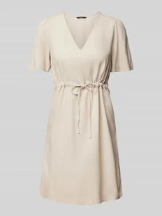 Sukienka mini damska VERO MODA;Mieszanka wiskozy i lnu;Prosty krój;Model ‘MYMILO’;Jednolity kolor;Dekolt w serek;Wiązany pasek;Rękaw o dł. 1/2;Długość tyłu w rozmiarze S: 70 cm;Szerokość klatki piersiowej w rozmiarze S: 46 cm;Długość rękawa w rozmiarze S: 26 cm